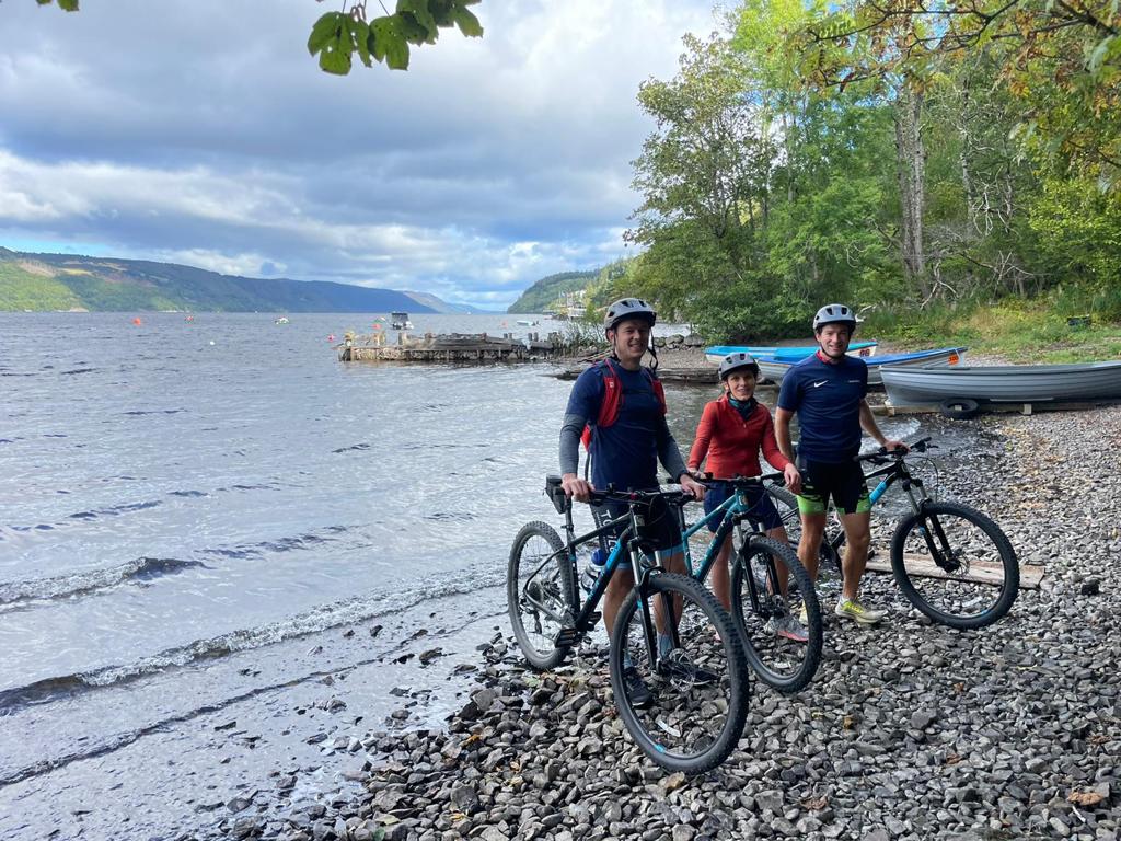 To begin the journey, three team members started their cycle from the pier in Fort Augustus. Whilst a 23km cycle in London is very achievable for Kate, James, and Phil, it was a slightly different terrain in Scotland; hill climb after hill climb mixed with some off-road trails! However, within 30 minutes, the team had already charged up their first hill and made a good dent in the first quarter of the distance. Two and a half hours later and one wrong turn, the trio arrived at their finishing point in Foyers!