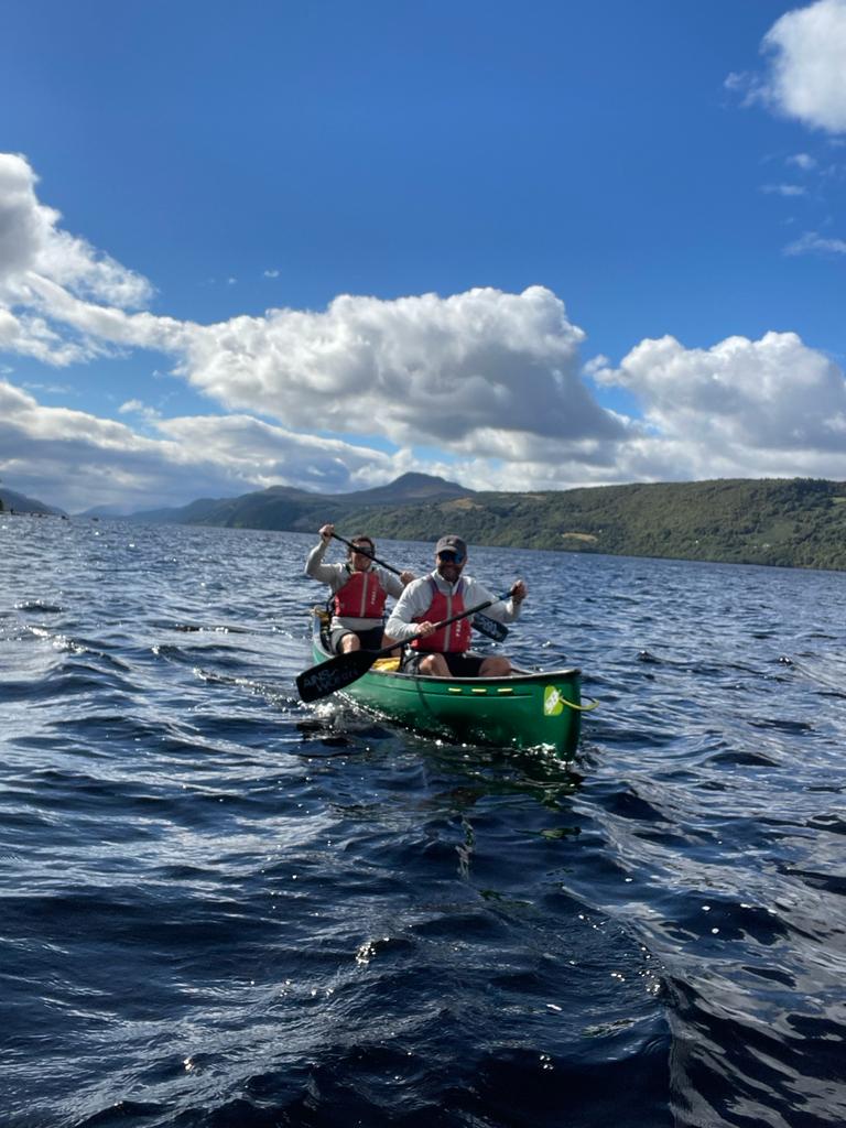 Having driven the length of Loch Ness the day before, we all underestimated the challenge they were about to endure. One and a half hours later, the remainder of the team spotted the six canoeists on Loch Ness. They were almost a quarter of the way in! Momentum and morale (and conversation) were still intact; so far, so good. Three hours into the journey was a different story. Silent team members and the thought of having a further two hours to wade through the choppy Loch Ness waters wasn’t motivating; it was time for a Guinness (or two)!
